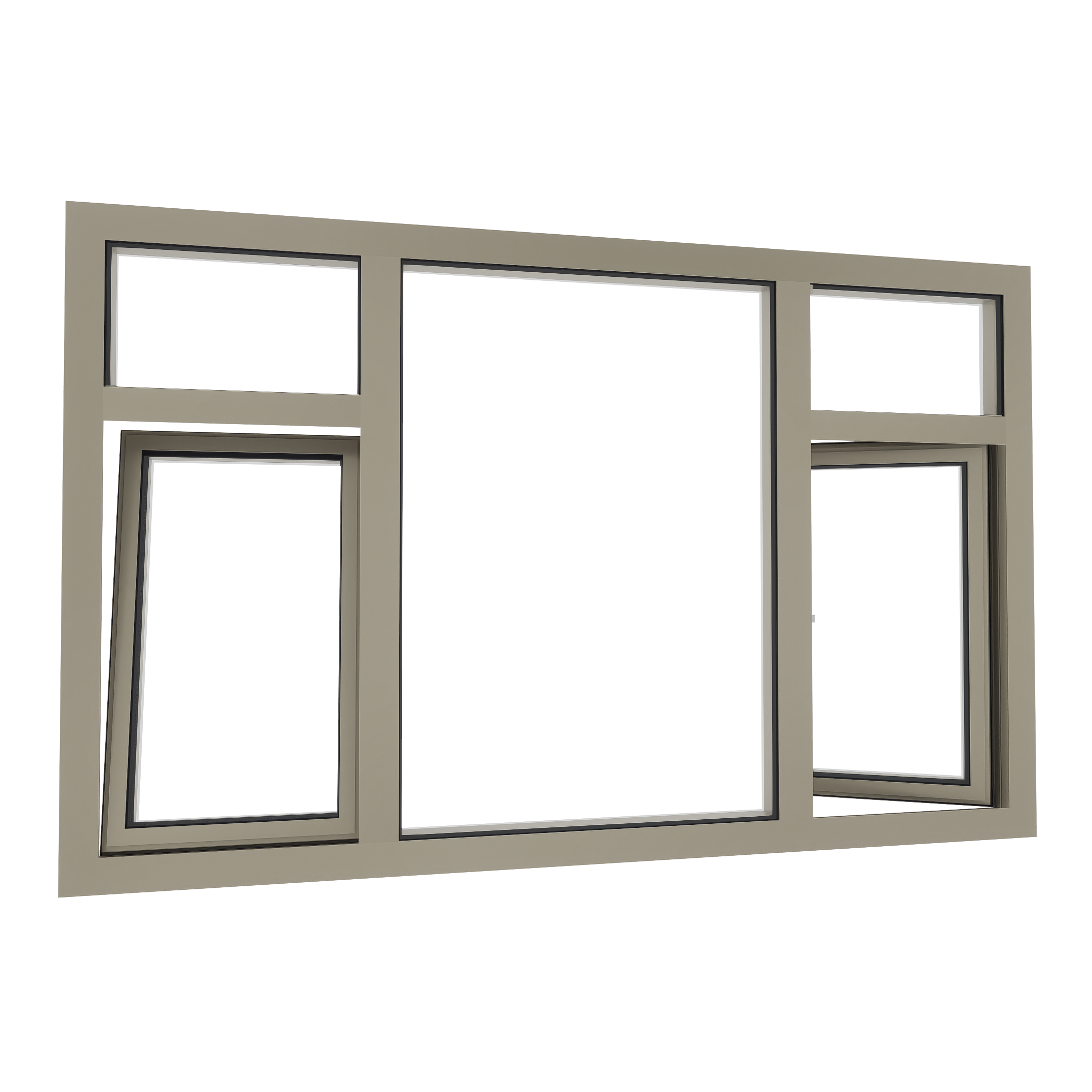 Aluminium dubbel draaikiepraam met bovenlicht en vast glasvak ertussen op maat bestellen