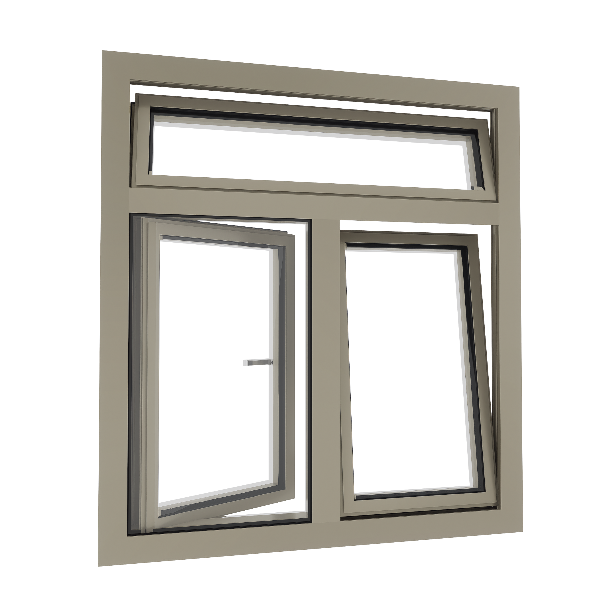Voorbeeld: Binnendraaiend draaikiep raam Al onze ramen zijn alleen beschikbaar in in binnendraaiende uitvoering. Dit is nu eenmaal beter voor het waterdicht / winddicht maken van het kozijn. Voordeuren en balkondeuren zijn ook naar binnendraaiend. Een achterdeur is altijd naar buitendraaiend (omdat we graag ruimte willen in onze tuingerichte kamer of garage/berging)