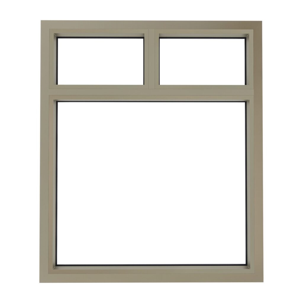 Een standaard aluminium vast glaskozijn met bovenlichten bij Partumonline bestaat uit de volgende onderdelen: