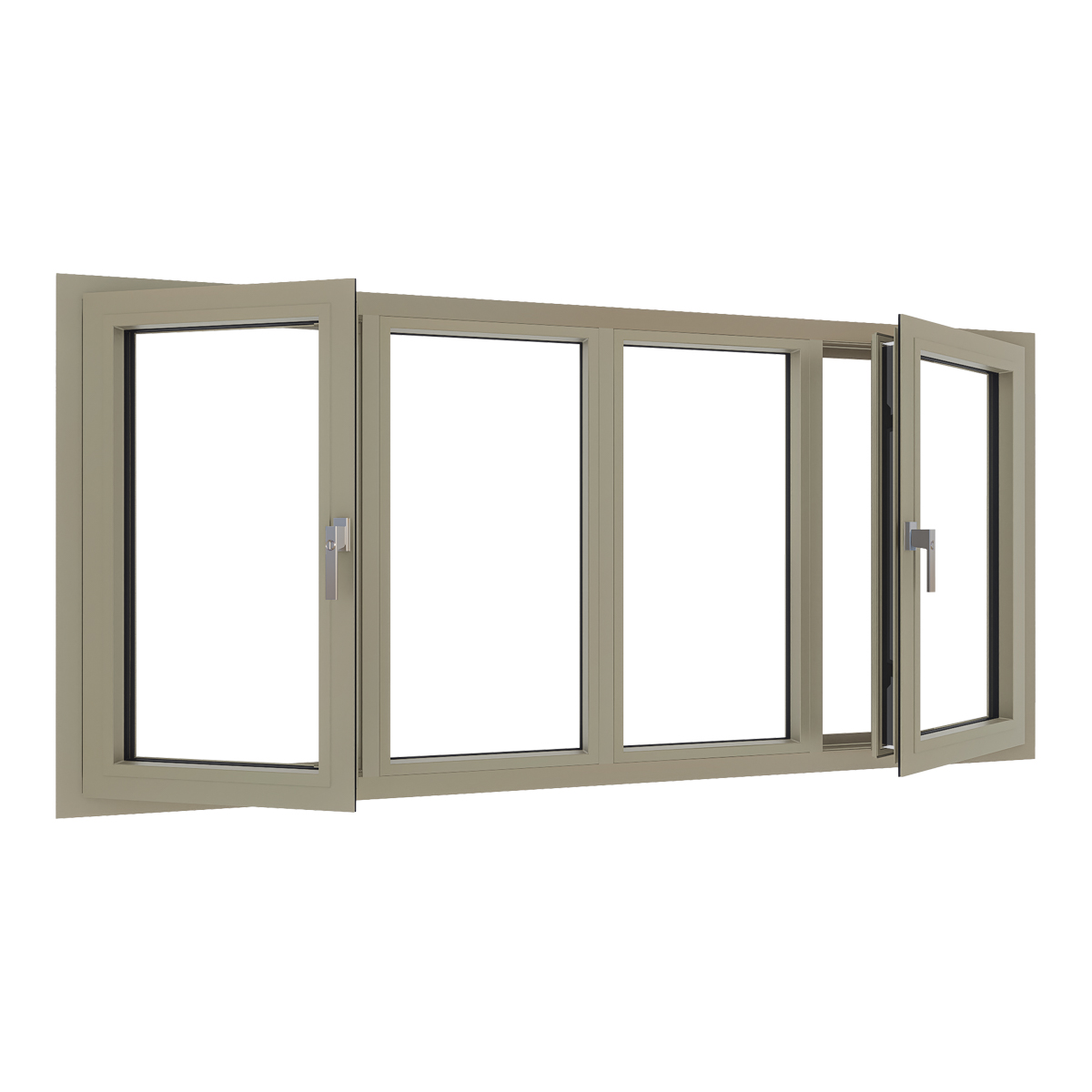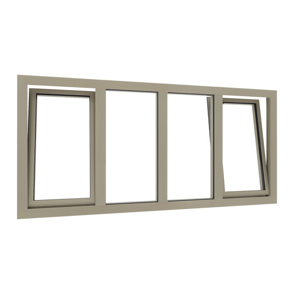 Aluminium vier vaks kozijn met draaikiepramen en glasvakken