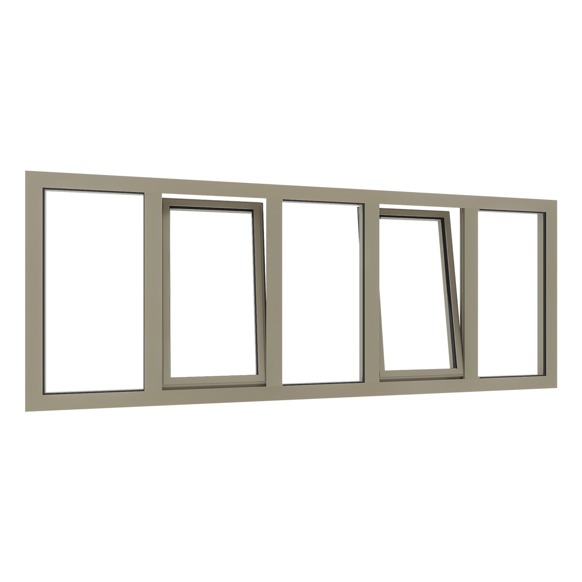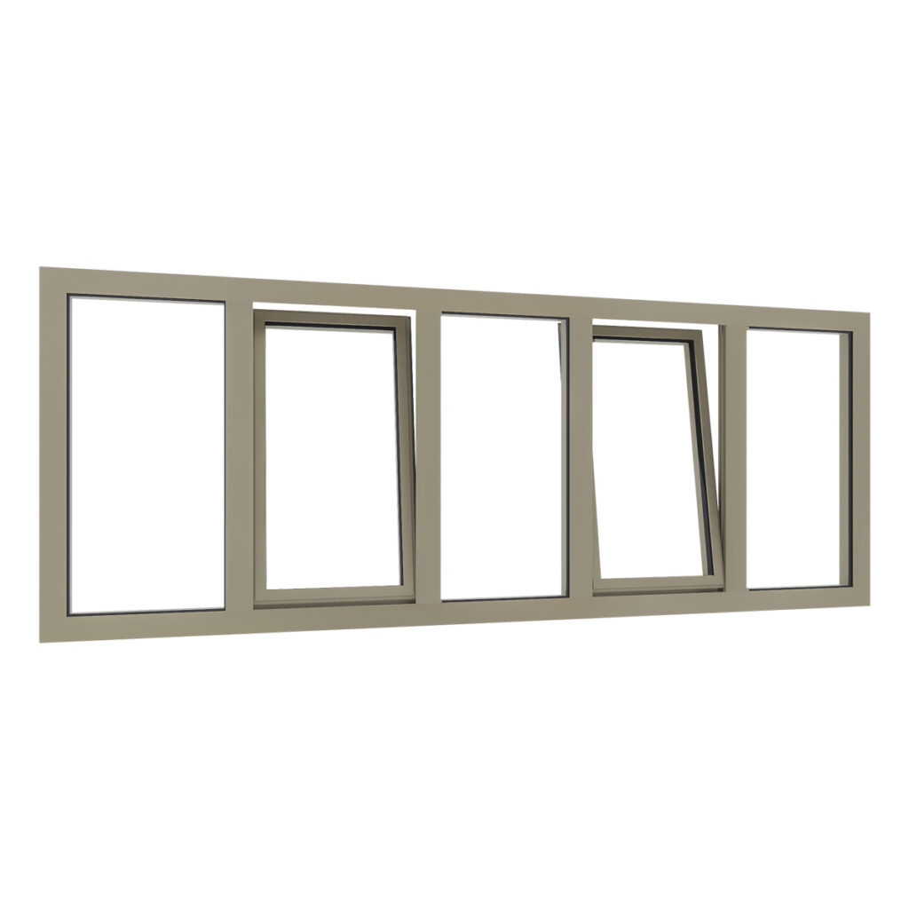 Aluminium vijf vaks kozijn met 2 draaikiepramen en vaste glasvakken op maat bestellen