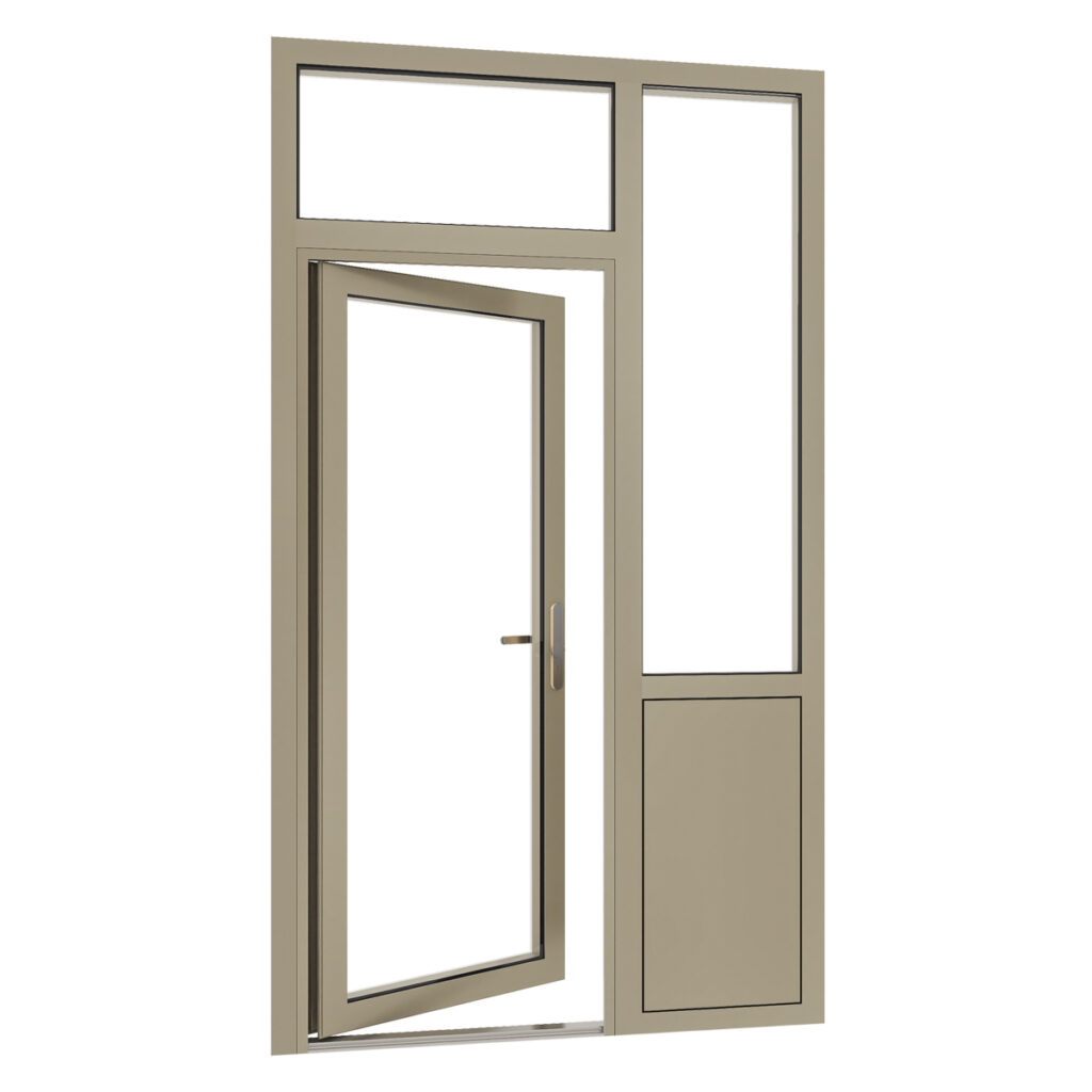 Met de online configurator van Partumonline stel je eenvoudig je eigen aluminium voordeur met zijlicht, bovenlicht en borstwering samen en zie je direct de prijs. Bij het samenstellen van een aluminium voordeur geldt dat er altijd van binnen naar buiten wordt gekeken. Op die manier stel je dus jouw aluminium deur samen in de configurator. Standaard bestaat een aluminium voordeur met zijlicht, bovenlicht en borstwering bij Partumonline uit de volgende componenten: