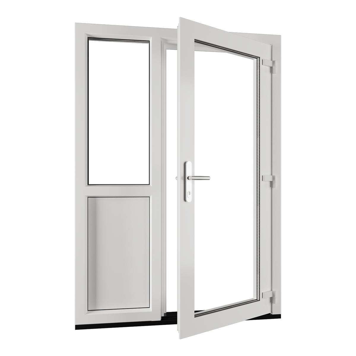 Via de bovenstaande configurator bieden wij bij Partumonline de mogelijkheid om naar eigen wens een kunststof achterdeur met borstwering en zijraam samen te stellen en online de prijs te berekenen. Bij het configureren van onze kunststof achterdeur wordt altijd rekening gehouden met het perspectief van binnenuit naar buiten. Op die manier kun je de deur geheel naar eigen voorkeur samenstellen. Standaard worden kunststof terrasdeuren bij Partumonline uitgevoerd met de volgende componenten: