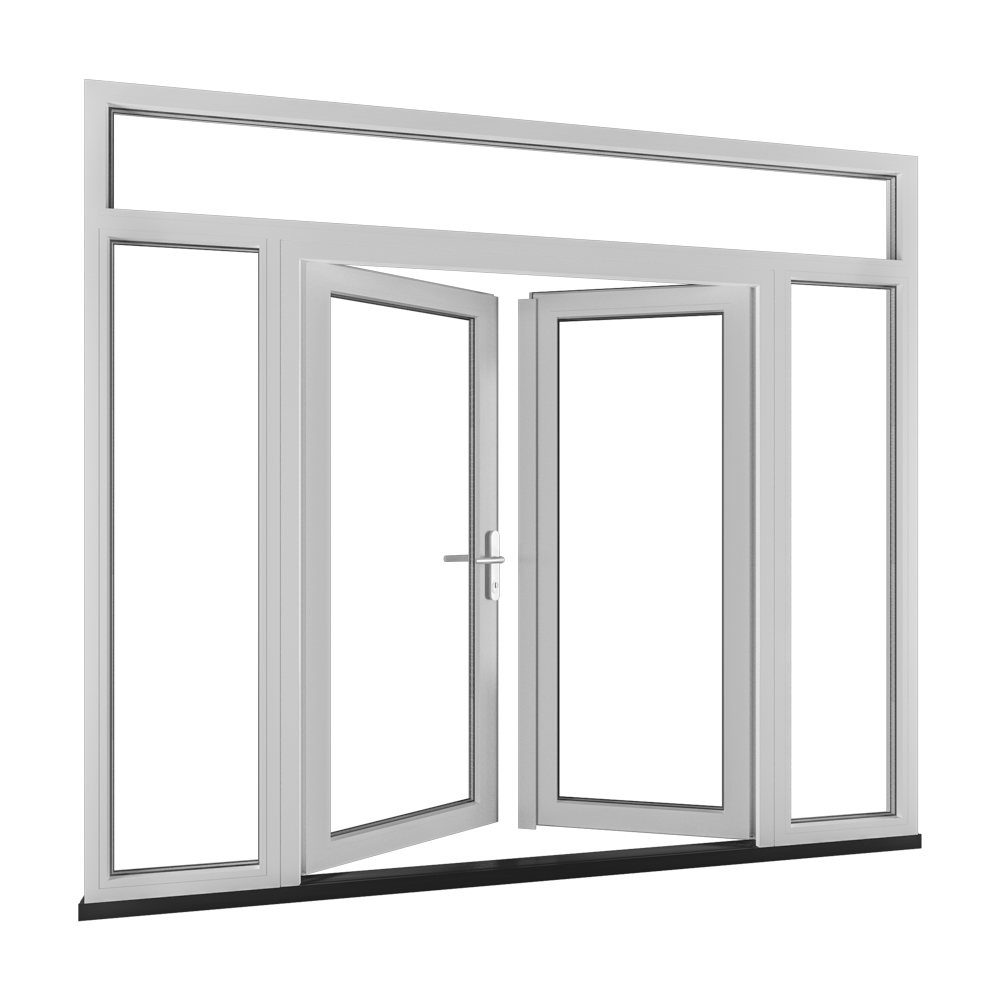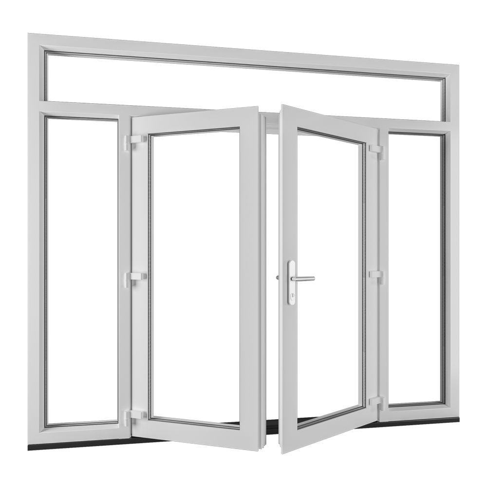 - Volledige Kunststof tuindeuren met bovenlicht en zijlichten inclusief kozijn