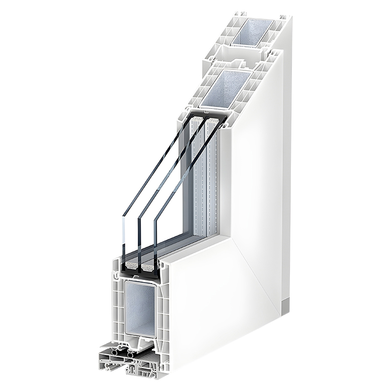 Het K-Vision Cube deur profiel is ontworpen voor optimale prestaties. De bouwdiepte van het kader is 120 mm en de vleugel 76 mm, met een aanslagmaat van 18 mm. Dit verdiepte systeem heeft 5 kamers in zowel de vleugel als het kader, en twee afdichtingen voor superieure isolatie. Met triple glas behaal je een Uw-waarde van 0,98 (W/m²K). De vleugel en het kader hebben een stalen kern voor extra stabiliteit. Het profiel is alleen beschikbaar met een HVL-verbinding en heeft scherpe hoeken van 0 graden.